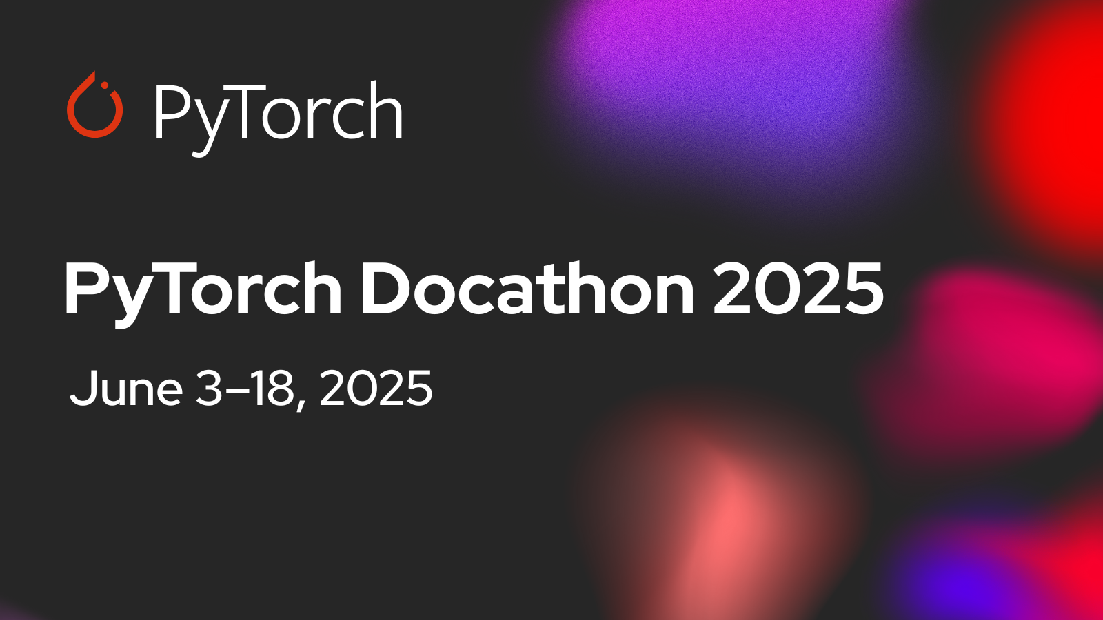 A hackathon-style event focused on improving PyTorch documentation with support from the community. Winners will be announced on June 18.