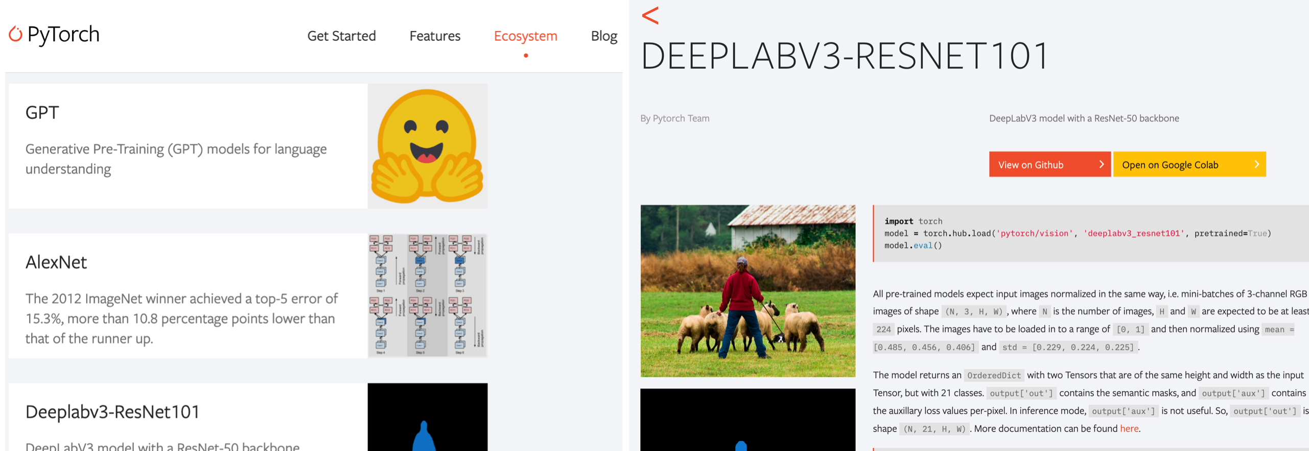 - Go to https://pytorch.org/hub to learn more about the available models.