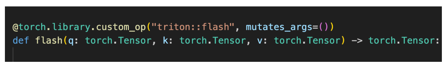 After defining the Triton flash kernel as a custom op, we were able to successfully compile it for our E2E runs.