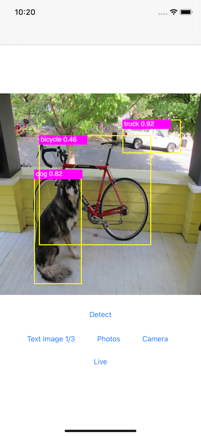 This app demonstrates how to convert the popular YOLOv5 model and use it on an iOS app that detects objects from pictures in your photos, taken with camera, or with live camera.