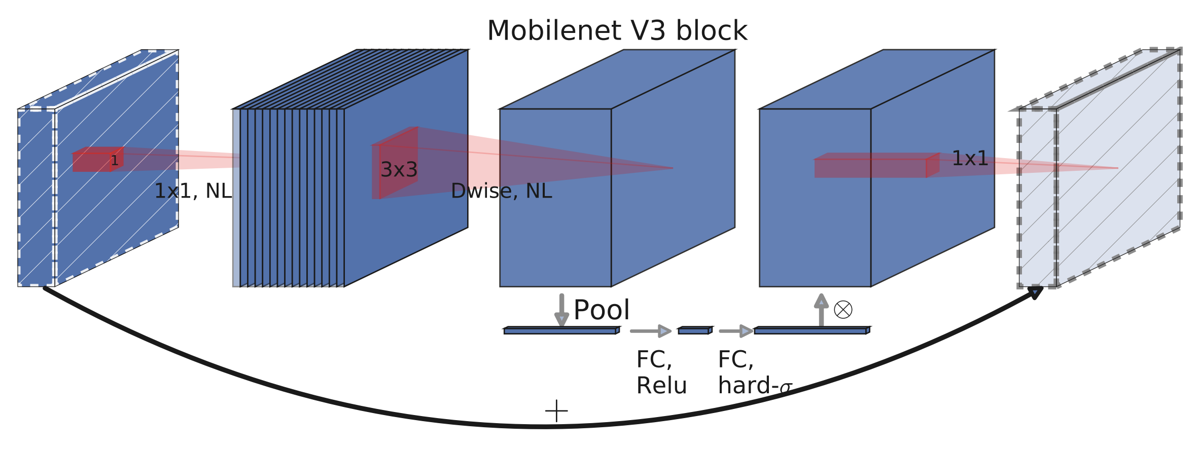 The implementation of the MobileNetV3 architecture follows closely the original paper. It is customizable and offers different configurations for building Classification, Object Detection and Semantic Segmentation backbones. It was designed to follow a similar structure to MobileNetV2 and the two share common building blocks.