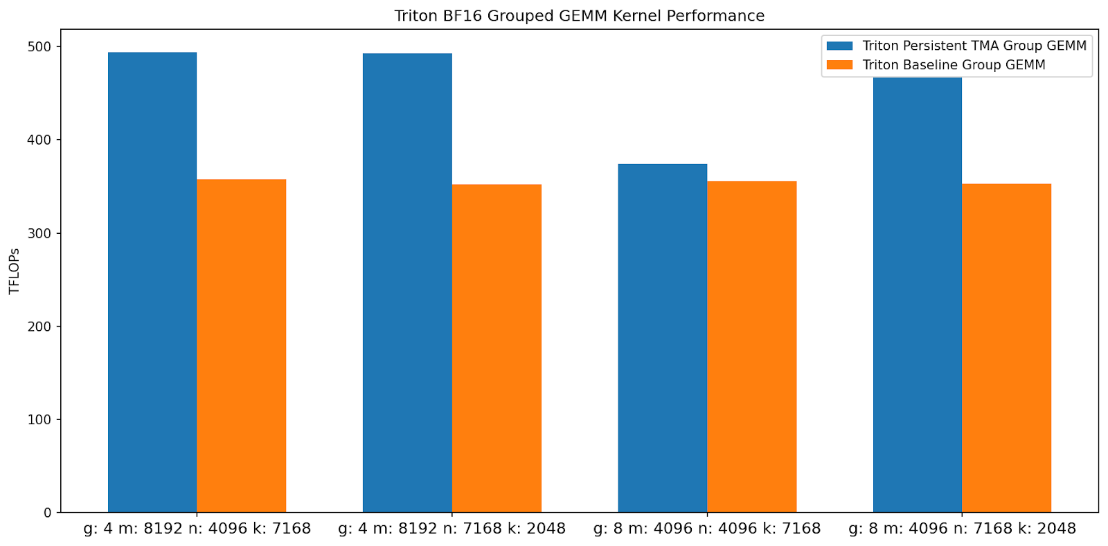Figure 5. Triton Group GEMM Kernel TFLOPs Comparison (Higher is Better)