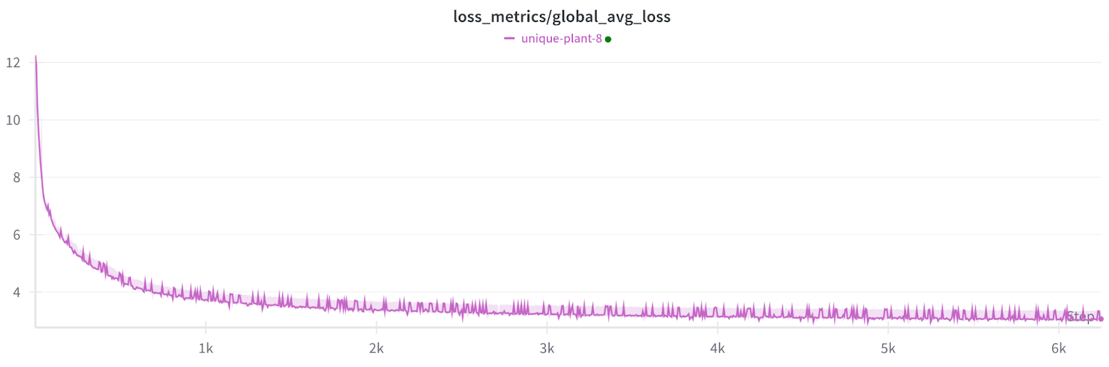 The loss converges slower as compared to our 60s MTBF run, but that’s expected as many more batches are being discarded due to errors.